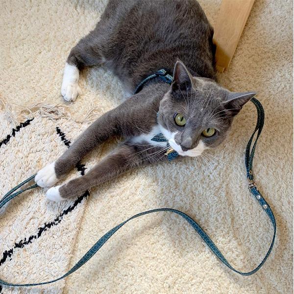 Fish Charm Cat Harness Collar Leash Set Total Length 47.2 Inches Fashionable Design Images |